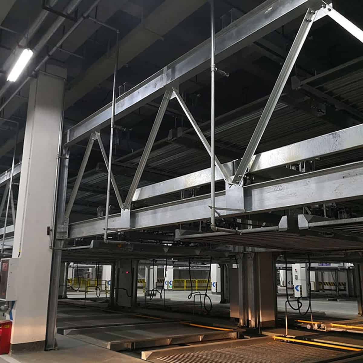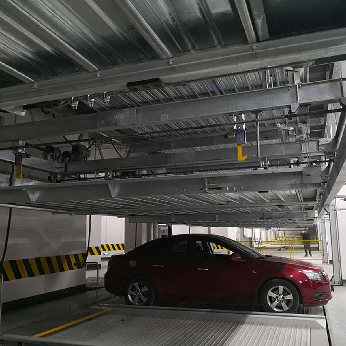 巷道堆垛类停车设备,是采用以巷道堆垛机或桥式起重机将进到搬运器的车辆水平且垂直移动到存车位,并用存取机构存取车辆的停车设备。主要由进出口设备、库内搬运设备、车辆存放设施、电控系统、安全检测装置等组成。……